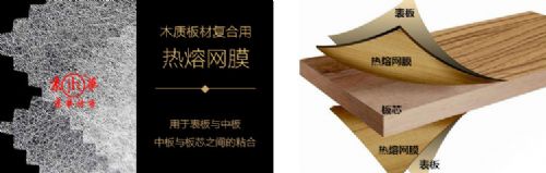 工作原理:利用非织造纤维的受热热熔的特性,达到合适的粘合温度后,与基质材料粘连、冷却固化在一起,起到复合作用。