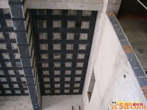 粘结剂,沿受力方向或垂直于裂缝方向粘贴在受损构件表面,粘结剂作为它们之间的剪力连接媒介,形成新的复合体。使增强贴片与原有钢筋共同受力,增大了结构抗拉或抗剪能力,能有效地提高强度、刚度、抗裂性和延性。整个工艺的关键在于碳纤维片材粘结的紧密、牢固,保证与原结构形成整体,能够共同工作。