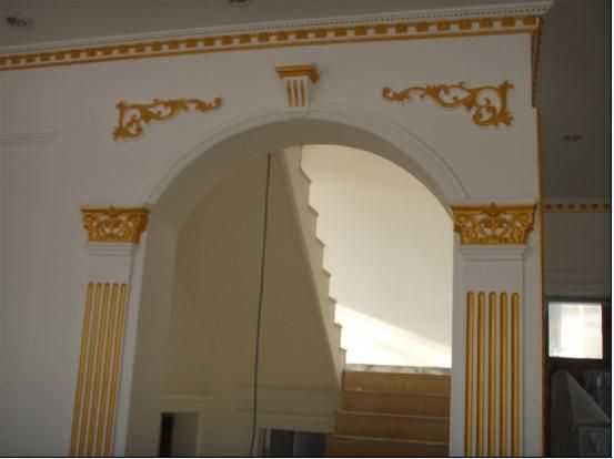 石膏线条由无机才料制成,具有防火、防霉、防蛀、防潮、隔音、隔热之功能。大方美观,防火,防潮等功能。