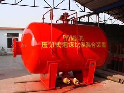喷嘴向扩散管喷出。进入喷嘴时,口径缩小,流速增大,由于射流质点的横向紊动扩散作用,在喷嘴出口与扩散管之间形成低压混合室,进入贮罐内的水将胶囊内贮存的泡沫液从出液管压出,经孔板进入比例混合器的低压混合室与流经比例混合器喷嘴的大股压力水流汇合形成3%或6%的泡沫混合液,该泡沫混合液被输送至泡沫产生设备,产生空气泡沫用于扑救甲、乙、丙类液体火灾及