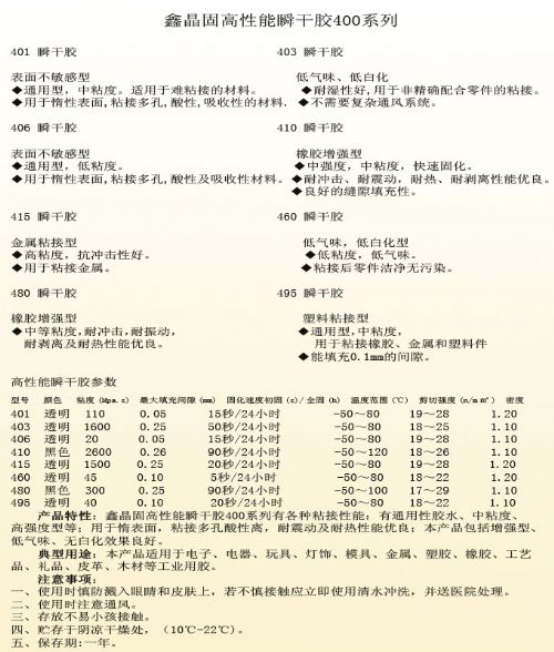 瞬干胶400系列有各种粘接性能:有通用性