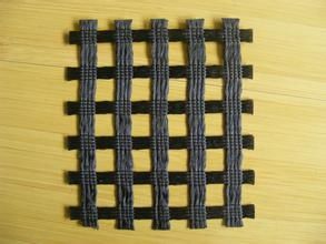 土工格栅是以高强涤纶无捻长丝为原料,采用经编衬经衬纬技术生产的网格状织物。因其经纬向纱线相互间无弯曲状态,在交叉点处通过高强涤纶长丝捆绑,形成牢固的结合点,故可充分发挥其力学性能,具有抗拉强度高、延伸率小、抗撕裂强度大,经纬向强度差异小、耐紫外线老化、耐磨损、耐腐蚀、质轻以及与土或碎石嵌锁力强等优点,可明显增强土体的抗剪切性能,提高土体的整体性与荷载能力。因此,该格栅被广泛应用于水利、建筑和公路等工程中,取得了显著的经济和社会效益。