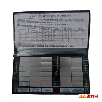 机械加工表面粗糙度比较样块简称粗糙度样块,是用特定机械加工方法加工方法加工的样块,其工作表面经检定后标出其粗糙度参数Ra或Rz的数值,并注明加工方法。根据加工方法的不同,表面粗糙度比较样块有多种,通常包括、车、磨、镗、铣、插及刨加工表面粗糙度比较样块。