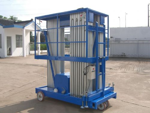 铝合金型材8米以下为单铝合金桅柱,10米以上为双桅柱式,设备上下控制升降占用空间小,可通过房间或楼梯口,安全可靠。