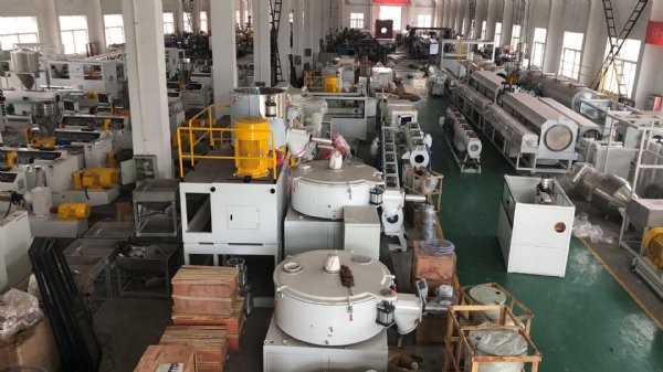 PVC高混机试用范围:热塑性塑料注塑挤塑吹塑前混合工艺脱浑和加热预塑化工艺.