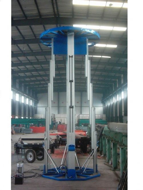 升降机为双桅柱升降系统,具有载重量大,稳定性强等特点。