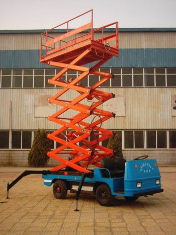 发动机或直流电做动力,既可行驶又可驱动平台升降。