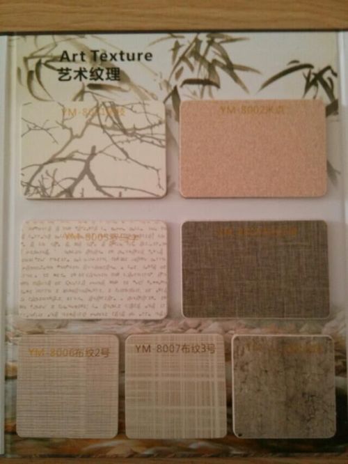 有高光、亚光、浮雕面,同时配套生产与饰面同色、同图案的各种收边线条。