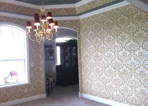 乳胶漆和壁纸因时有机材料,光线强烈刺眼,密密麻麻的机械式图案,让人看了眼花缭乱。