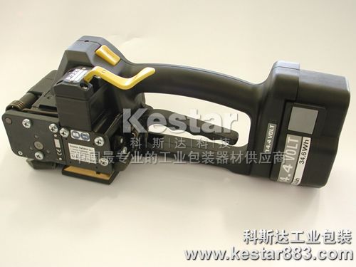 钢带捆扎包装的手持式打包工具,采用高效能锂电动马达驱动,通过对重叠的PET塑钢带进行高速摩擦热熔,将塑料