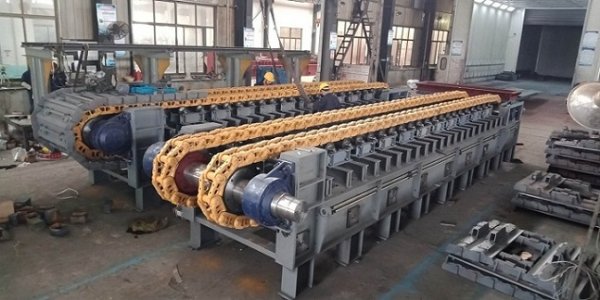 运行部件是本板喂机的关键部件,在设计与制造技术上均采用了较新的技术。其牵引链条与承载构件分开,加上采用适宜的节距,保证了啮合与运行的平稳。