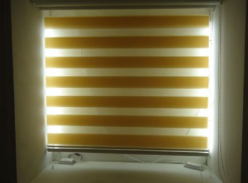 百叶帘开启,调光功能。--调节帘布角度,可使不同透光度帘布重叠,拥有布艺轻柔的质感。有效阻挡紫外线--隔光帘布闭合时可隔离98%紫外线,保护室内物品免受紫外线损--隔光帘布开启时可隔热63%紫外线。帘布表面经高温,高压,防静电处理--帘布不易积灰,清洁保养简单,方便--面料不易变形。有内藏式顶槽-窗帘完全收拢时,帘布与底槽完全隐藏于顶槽内,可有效保护窗帘。双层可局布调节光线的柔纱帘,集百叶帘与卷帘功能一体,立体感强,非常温馨,适合家居,酒店,别墅高档写字楼等办公场所。