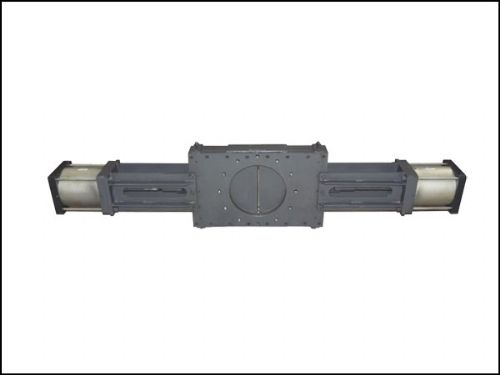 特点是采用双阀板、双向对开对关特殊设计,防卡堵能力强。行程短,采用气动方式,开关迅速。阀板超厚设计和巧妙的构建配合,避免遇