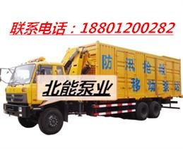 电源供其他用电抢险设备使用;移动泵站同时工作排水量可达150-6000m3/h扬程10-100米参数可以根据用户要求定制。同时该车具备夜间照明、警示功能。该移动泵站上还可以配置2台600-800m3/h的