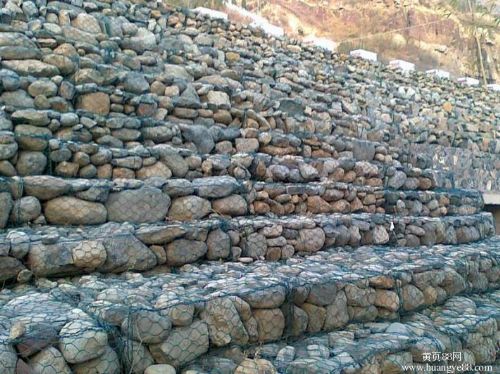 石笼网钢丝的抗拉强度不少于38kg/m2,金属镀层重量一般高于245g/m2,石笼网片的边缘线直径一般要大于网线直径。其双线绞合部分的长度不得小于50mm.以保证绞合部分钢丝的金属镀层和PVC镀层不受破坏。