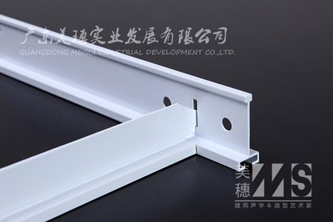 采用国标1633*1.0㎜、副龙骨采用1624*1.0㎜铝合金大方槽通贯龙骨,从结构上将受力面与装饰面分开,可保证在装饰面受损的情况下结构安全不受任何影响;边角为国标1.0㎜铝合金花式边角,对于与墙壁等物体连接时出现的不平有校正作用,且