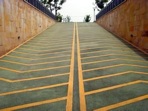 颜料及添加剂的高强度耐磨材料。其优点是易施工,一次成型,使用期长,施工快捷,修复方便不易褪色等,同时又弥补了普通彩色道板砖的整体性差,高低不平,易松动,使用周期短等不足。