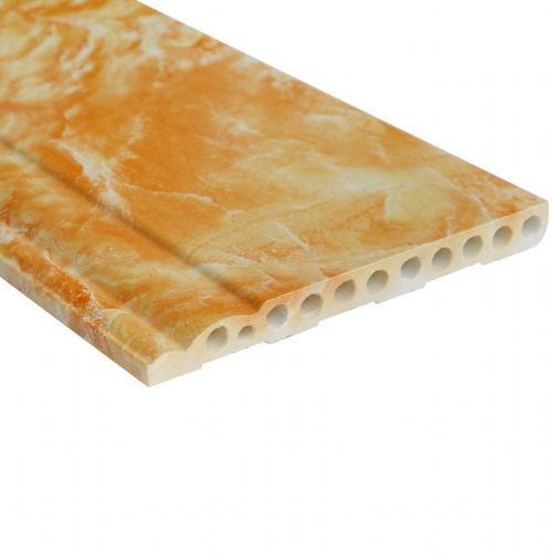 大理石线条的基材采用钙粉和PVC科学配比,经过挤塑设备一次成型,热转印工艺做上理石花