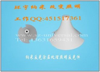 反光罩/反射罩进行表面处理,比如阳极氧化、电镀、贴反光纸/膜等,用以提高照明设备/装置的反射率,提高光效,但是,这些传统的表面处理方法,很大程度限制了照明灯具的光输出率(电镀的全反射率90%左右,阳极氧化的全反射率50%左右)。纳米漫反射材料在照料中的应用,为照明反光材料提供了一种新选择!