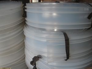 乙烯树脂、增塑剂、稳定剂等原料,经塑炼、造粒、挤出、加工成型而成,它具有耐老化、抗腐蚀、扯断强度高、耐久性好、物理力学性能满足使用要求,与橡胶