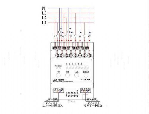 智能继电器模块弱电端的接线。每个智能继电器模块上面都有总线端子,一般来说,其弱电端的接线都是按照“总线式”接线,也就是我们俗称的:手拉手方式。总线方式一般采用两芯的,或者四芯的。其中有两根是模块弱电供电,另外两根是模块的信号线(两芯的是即供弱电,同时也供信号)。