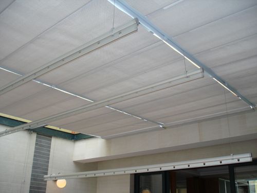 可用于商厦、商场、宾馆、写字楼、等大型采光顶也可用于高级住宅阳光室、花棚、玻璃阳台等处调节遮阳、保持室内适宜温度,避免强光辐射,改善采光效应。本工程中,电动双轨折叠式