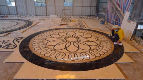 切割,人工拼接,水磨真光打磨,产品广泛适用于大型酒店大堂、走廊、墙面