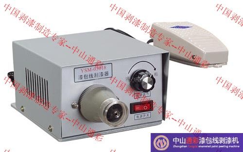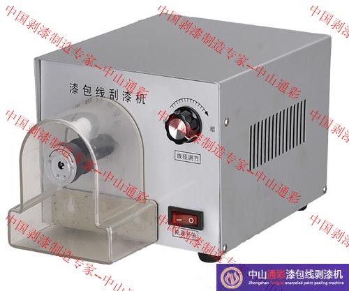 将漆包线伸入刀架中央,按下启动开关,电机随即转动。将漆包线慢慢地从刀架中拉出,剥漆工作即完成。根据漆包线线径粗细不同,调节刀片的转速,线径越细,转速需越低,线径越粗,则转速调越快。