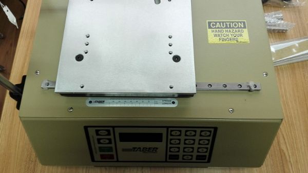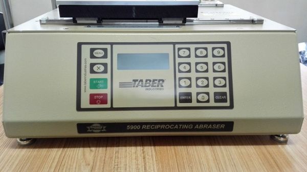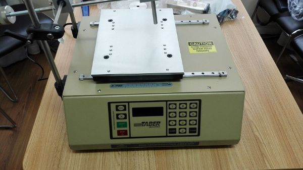 测试样品被固定在水平的样品台上,在规定的磨料和负载下随着样品的水平移动而被磨耗。测试臂的另一端配以砝码来保持测试臂的平衡,以确保样品表面负载的精确性。磨料和负载架高度可调,以适合不同高度样品的测试。诸如冲程、速度以及负载等参数均可调节。