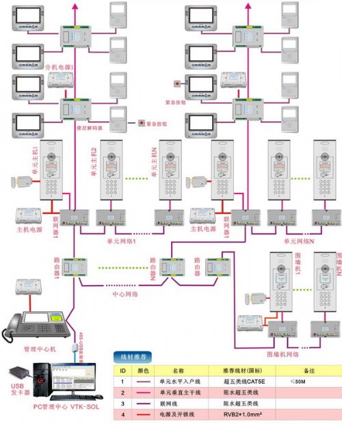 ● 超大容量:总线式布线,*多可以支持9999个门口主机,支持超大型联网社区