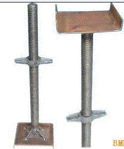 脚手架、碗扣脚手架配合使用,起到上顶,下托的作用。各地叫法不同,也称U托、油托或丝杠,规范叫法:可调底座顶托。规格有:φ26-φ34。其中丝杠一般是用