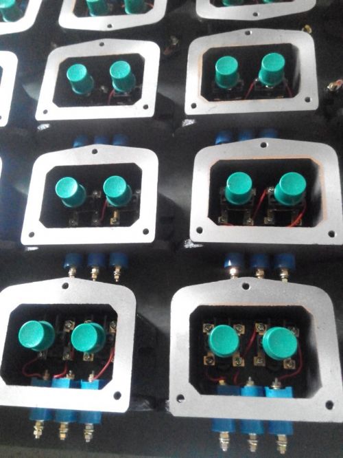 按钮为铸铁外壳,由接线腔和主腔两部分组成,上盖装有3个按钮片,用红、绿颜色区分其作用(红色为停止按钮,绿色为启动按钮,接线腔有4个