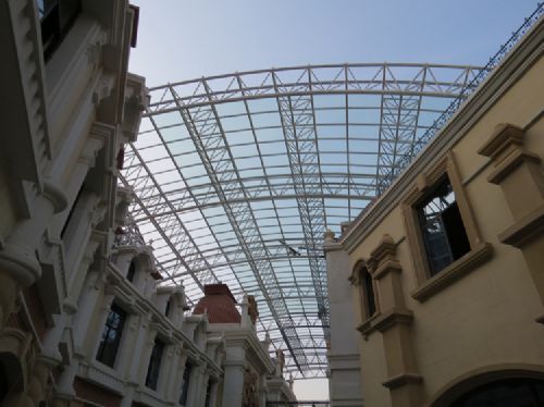 网架结构发展而来,但省去下弦纵向杆件和网架的球节点,可满足各种不同建筑形式的要求。管桁架结构尤其是构筑圆拱和任意曲线形状比网架结构更有优势。管桁架结构特有的层次感给用户带来无与伦比的结构美,易于构成各种外形以适应不同的用途,譬如可以做成简支桁架、拱、框架及塔架等。