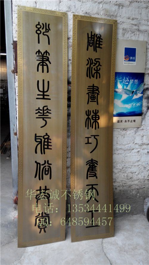 高端装饰品已得到广泛应用,适用范围:酒店、餐厅、会所、会馆、别墅\KTV、家居、商场、超市等;可供选择的颜色有:玫瑰金、香槟金、青古铜、古铜、钛黑(黑钛)、钛金、钛白、天蓝、宝石蓝、咖啡色、茶色、翠绿、绿色、紫色等;艺术效果有:镜面,镜光,拉丝,拉丝无指纹,拉丝防水。