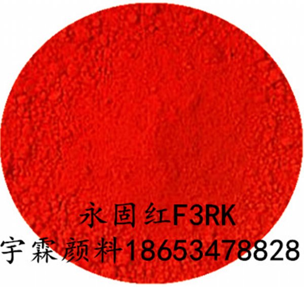 颜料有限公司18653478828供应3128永固红F3RK,别名:有机颜料红170号、耐高温红颜料等。国际索引号:C.I. Pigment Red 170 (P.R.170),偶氮颜料。【物化和牢度性能】:PH值:6.0-7.0 ,吸油量(ml/100g):35-45,耐光性:6 ,耐热性:210℃ ,耐水性:5 ,耐油性:4 ,耐酸性:5 ,耐碱性:5。【色光及应用领域】:黄光红颜料,用于高档
