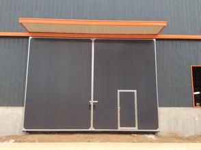 常用于各种车间、厂房、仓库用门;在建筑物门洞左右的空间,选择双向或单向推拉的开启形式;在建筑物门洞尺寸大小,选择左右或上下重叠推拉的开启形式;一般为上承重悬挂式,当用户需要或门洞上方不具备安装轨道的条件时,可设计为下承重支撑式;为方便人员进出和保证采光,可开设小门或采光窗。