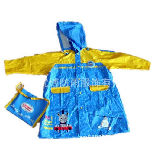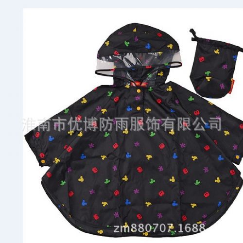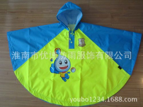 本品为涤丝布防雨面料,加100%环保PU涂层,衣缝处全部用热封胶烫压而成,强力防水、透气透湿,时尚韩版设计,**不裉色鲜亮卡通图案,可印制LOGO,深得小朋友喜爱!