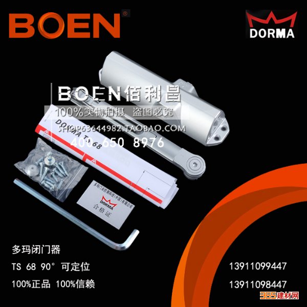 闭门器TS68。它可广泛应用于门宽1100mm以下的各种通门扇。通过转换摇臂座或改变机体安装位置,可选择配合不同宽度门扇之闭力级。安装时,包装内的1:1安装定位纸样使安装变得更快捷,更标准,更方便简单。