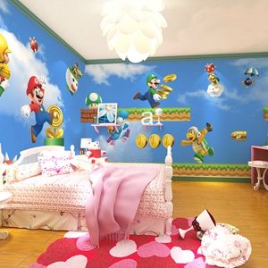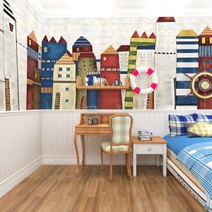 卡通房儿童卧室背景壁布墙纸