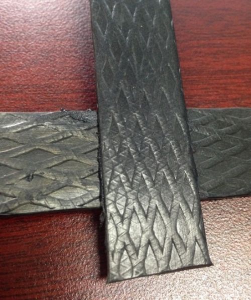 是以聚丙烯为主料,加入抗老化剂和其它辅助剂,通过挤压拉伸成表面有粗糙压纹的高强度的精制肋条,把肋条按平面经纬成直角,经超声波焊接其交点而成。