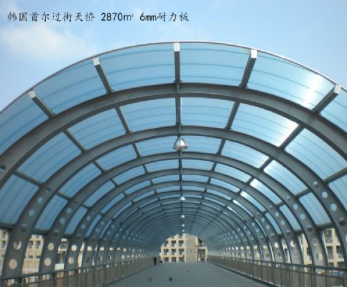 (10)耐候性: 耐力板可以在-40℃至120℃范围保持各项物理指标的稳定性。人工气候老化试验4000小时,黄变度为2,透光率降低值仅0.6%。
