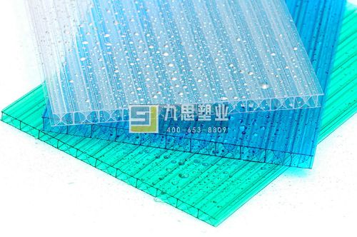 (3)防紫外线:PC板一面共挤有抗紫外线(UV)涂层,另一面具有抗冷凝处理,集抗紫外线、隔热防雾滴功能于一身。可阻挡紫外线穿过,及适合保护贵重艺术品及展品,使其不受紫外线破坏。