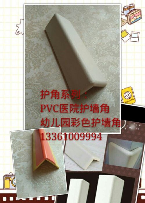 护角条用于各种墙角保护,起到缓冲碰撞,对墙角进行“软处理”。具有美观防撞的作用,主要用于学校、幼儿园、医院、大型办公厂所以及工厂等.此款产品的材质为PVC高分子材质.此材质具有表面弹性好、密度高、结实不易断裂、安装简单(只需用胶粘上去即可)等优点.是幼儿园及医院等防止儿童擦碰的理想之选.