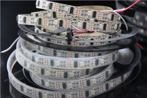 灯条变化不同的效果;如闪烁,追逐,跳变,顺时针跑马,逆时针跑马,单色跑马,变色跑马,单颗追逐从头到尾,流水,模拟闪电等;此款灯条的变化效果不限于目前控制器内置的94种效果,可以根据客户需要,自行编写;排成屏的形式可以显示,文字,字母,图片,动画,等等。