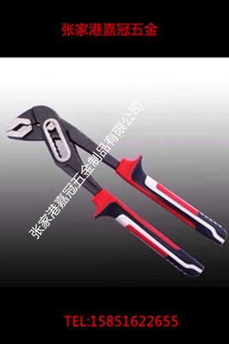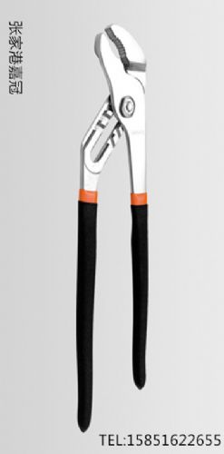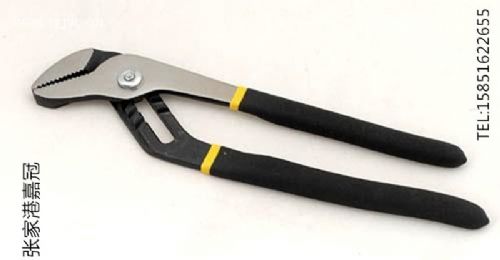 水泵钳用于夹持扁形或圆柱形金属零件,其特点是钳口的开口宽度有多档(三至四档)调节位置,以适应加持不同尺寸的零件的需要,为汽车,内燃机、农业机械及室内