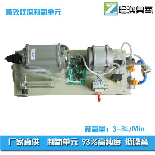 沸石分子(ZMS)的吸附塔,空气中的氮气、二氧化碳、水蒸气被吸附,采用加压吸附,减压解吸的偱环周期,使压缩空气交替进入吸附塔来实现空气分离,从而连续产生高纯度的氧气。