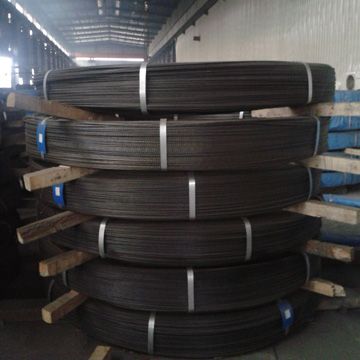 高碳钢盘条(high carbon wire rod)经表面处理后冷拔而成,钢的含碳量在0.6-0.9的范围选择,冷拔前要经过酸洗磷化或其它形式的表面处理,冷拔后横截面积一般会减少50-85%,通过冷加工硬化原理提高强度。