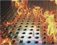 纤维水泥板,表层钢板是20mm间距,全面击打出5mm的圆孔,孔内钢板为锯齿状,深入水泥层,用高压将三者紧密结合,水泥凝固时即成为兼具钢板与水泥功能的耐用钢防火