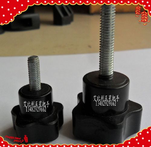 螺母、胶木把手等。国家机械操作件标准JB317.22-85(Z64-7),标准规格有:M5*25,M6*32,M8*40,M10*50,M12*63,M16*63等规格螺纹有效长度L可以按照用户不同需要制作,同时还推出通孔五角星形把手、内孔光孔五角星形把手侧面圆销孔紧定和压片五角星形把手、带压片五角星形把手。
