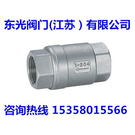 立式止回阀:由于管线中进口端介质的压力作用,而克服弹簧阻力使阀门开启或关闭。当进口端介质压力低于出口端时,弹簧将阀芯推向阀座而使阀门关闭,阻止介质逆流,故起止回作用。立式止回阀广泛使用于化工、液化石油气、流体等行业。止回阀按结构划分,可分为升降式止回阀旋启式止回阀蝶式止回阀三种。立式止回阀是指依靠介质本身流动而自动开、闭阀瓣,用来防止介质倒流的阀门,又称逆止阀单向阀、逆流阀、和背压阀。止回阀属于一种自动阀门,其主要作用是防止介质倒流、防止泵及驱动电动机反转,以及容器介质的泄放。止回阀还可用于给其中的压力可能升至超过系统压的辅助系统提供补给的管路上。止回阀主要可分为旋启式止回阀(依重心旋转)与升降式止回阀(沿轴线移动)。